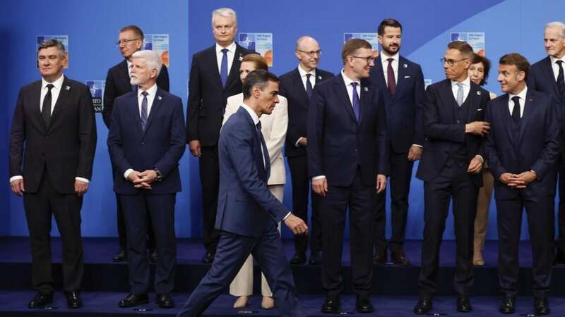 6月26日西班牙首相桑切斯(中间步行者)在北约海牙峰会现场