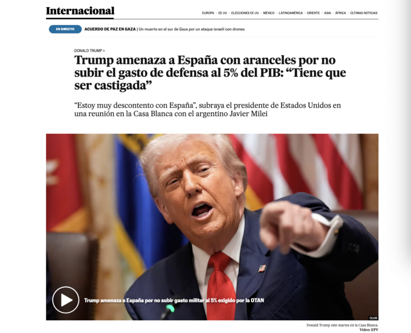 在这种背景下,西班牙拒绝履行将军费开支提升至GDP5%的协议,某种意义上是一种“有意识的反抗”。这不仅是对不现实军费目标的抵制,更是对不对等联盟关系的抗议。正如西班牙学者塔皮亚所言,桑切斯政府的拒绝“不是单纯的预算问题,而是一种政治宣言”——表明欧洲南翼国家对于美国在欧洲推动防务战略的抵触情绪,拒绝被动卷入以美国为主导的军事扩张逻辑。
