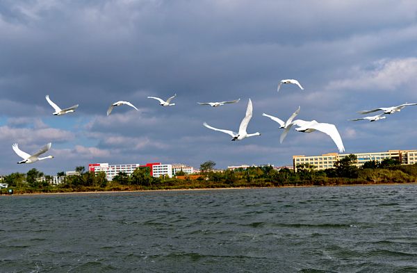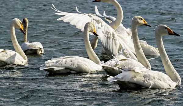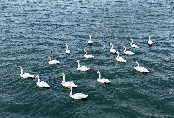 大天鹅翩翩而至 山东荣成天鹅湖迎来越冬季