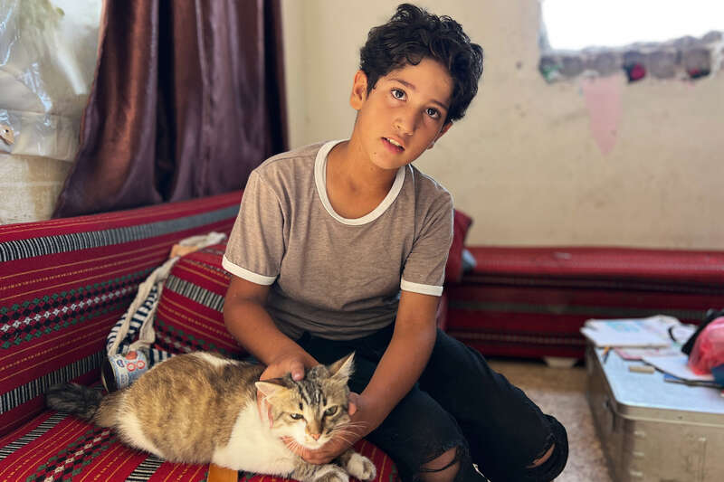 她的丈夫在加沙城的轰炸中遇难。带着患癌的儿子,娜赛姆被救护车转移到南部的汗尤尼斯。