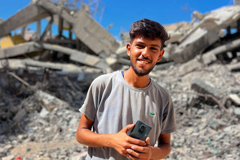 通过手机,穆阿明与在异地及加沙外的兄弟保持联系,查看新闻,继续自己的本科学业,还记录轰炸的瞬间。