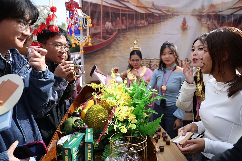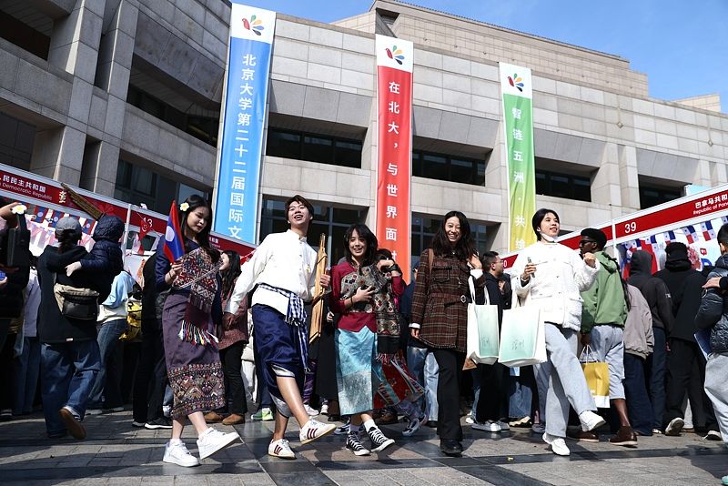 2025年10月18日,北京大学第二十二届国际文化节在北京大学百周年纪念讲堂广场开幕。 中新社记者 王紫儒 摄
