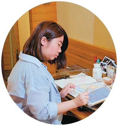香港青年林颖彤在位于香港荃湾西如心酒店的青年宿舍中画画。