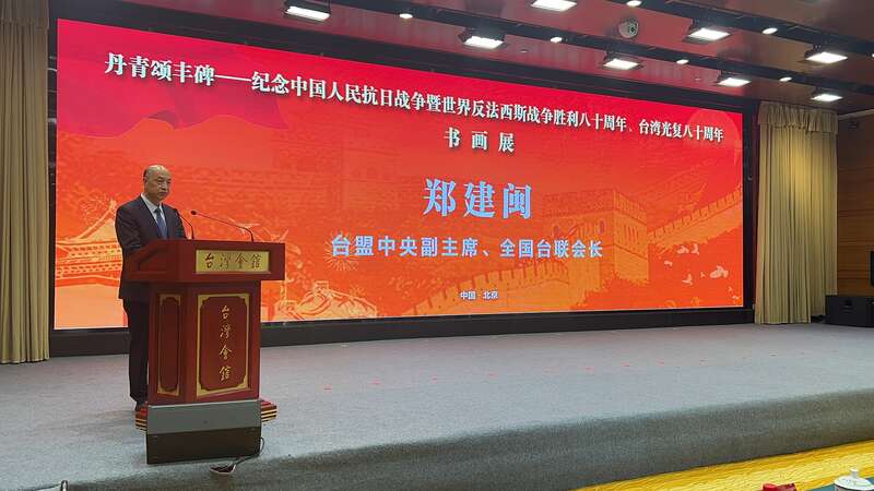 台盟中央副主席、全国台联会长郑建闽在致开幕辞时表示,台湾是中国领土不可分割的一部分。台湾同胞在民族危亡的紧要关头和大陆同胞并肩作战,他们用生命和热血捍卫了祖国的领土完整与民族尊严。这段共同抗争的历史,是两岸同胞血脉相连、同仇敌忾的生动见证,也是本次活动的重要精神内核。本次主题创作展汇聚了两岸众多书画名家的心血之作,这些作品犹如一扇窗口,人们能透过一幅幅作品领略中华传统书画艺术的独特魅力和两岸文化同根同源的深厚底蕴。