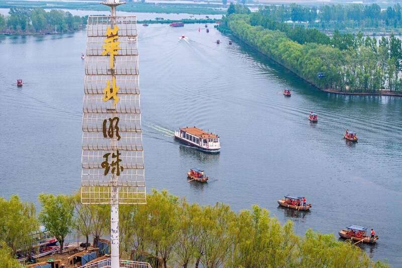 △河北雄安新区白洋淀旅游码头游船来往穿梭
