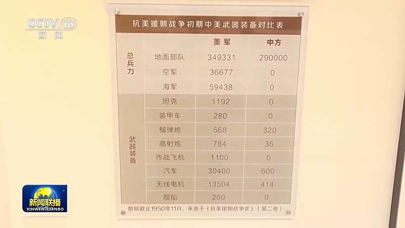 军号响起,使命召唤。在哈军工纪念馆,这张抗美援朝战争初期中美武器装备对比图,震撼着世人。中方空军0、海军0、坦克0、装甲车0、作战飞机0、舰船0……如此悬殊的装备下,中国人民志愿军浴血奋战,顽强战胜强敌。