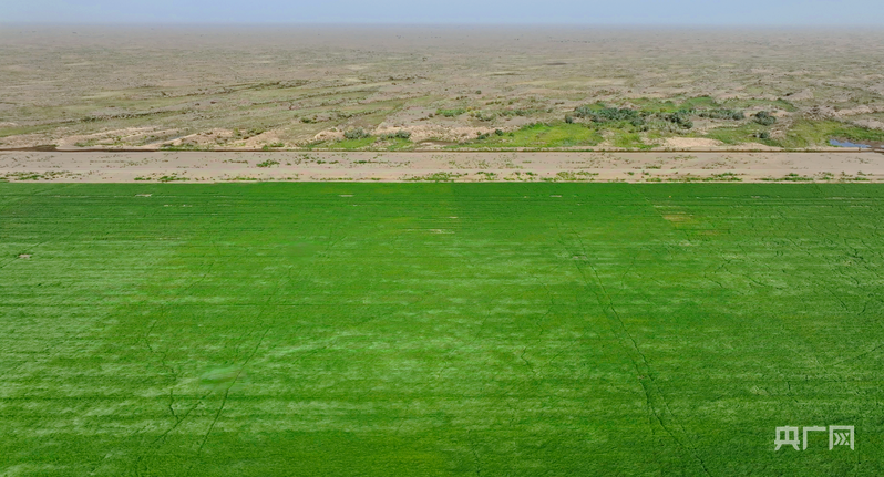 数据显示,种植油莎豆后,兴安镇年降雨量从不足30毫米增至130毫米,7级以上大风天数减少三分之一,土壤有机质含量从0提升至1.3至1.4,绿化覆盖率跃升至50%。