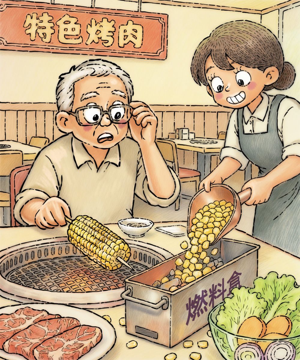 的确,玉米是常见的粮食,也是生产乙醇的原料之一。从不同角度看,会得出不同的结论,热议背后也是公众反对浪费粮食的朴素关切。如果烤肉店是出于助农的目的收购陈玉米作为燃料,这样的善意可以理解,但是如果将其当作营销噱头,就值得商榷。