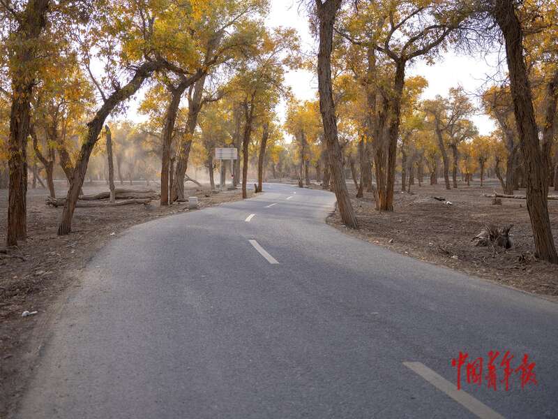 2025年10月22日,新疆沙雅县城,这条139县道被当地人称为“秘境公路”——它像条细韧的绿丝带,串起世界最大胡杨林、塔里木河古渡口与隐世红柳滩,全程139公里,每公里都是风景。中青报·中青网记者 李隽辉/摄