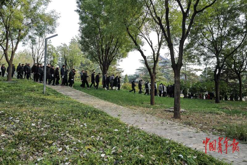 10月24日,北京八宝山殡仪馆,参加杨振宁遗体告别仪式的民众排起长队。中青报·中青网记者 赵迪/摄