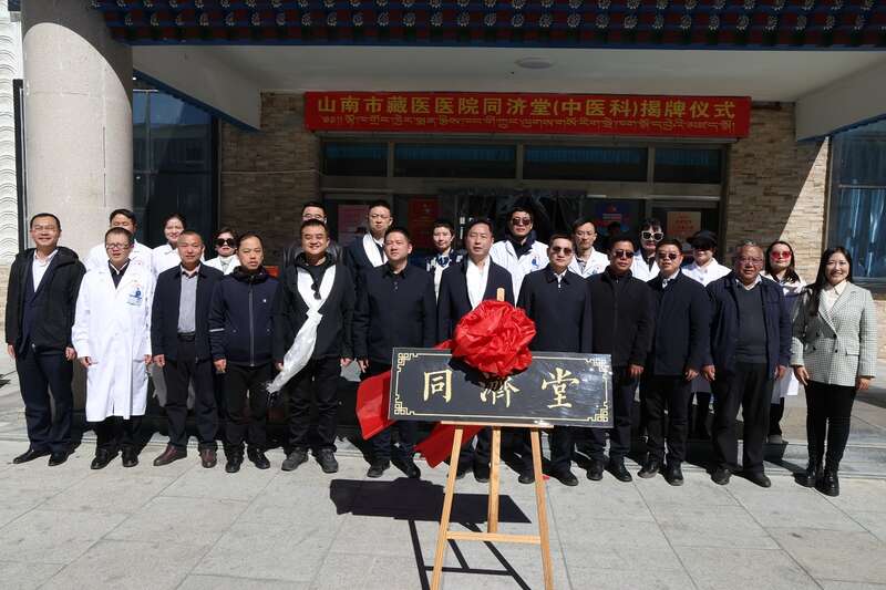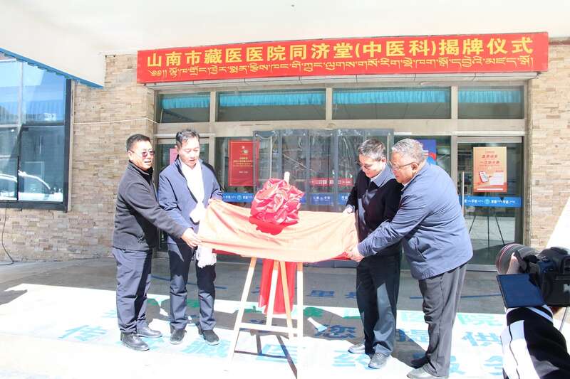 山南市卫健委党组副书记、主任其米拉珍,市委组织部副部长李畅,湖南省第二人民医院党委书记周奇,山南市藏医医院院长拉巴次仁共同为同济堂揭牌。