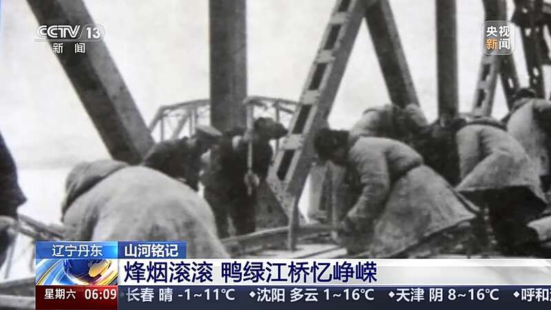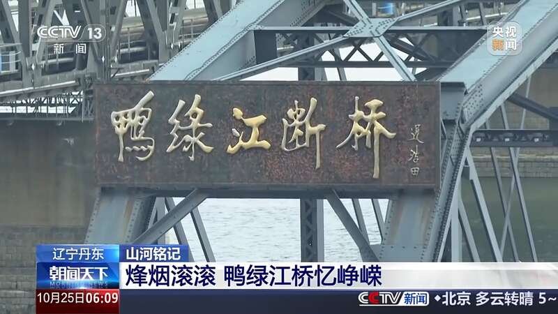 总台记者 闫崎峰:我现在是在中朝友谊桥上,也就是经常说的鸭绿江上桥。在旁边就是鸭绿江断桥,它也通常被称为鸭绿江的下桥。在1950年11月8日到14日,美军出动了100多架战斗机,对这座桥进行了轰炸。在此期间,这座桥被炸断。