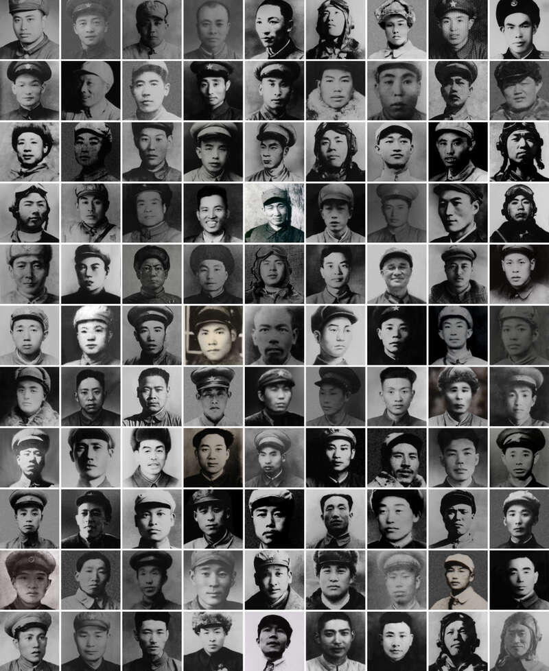 这是在沈阳抗美援朝烈士陵园安葬的部分志愿军烈士肖像(拼版照片)。新华社发(沈阳抗美援朝烈士陵园供图)