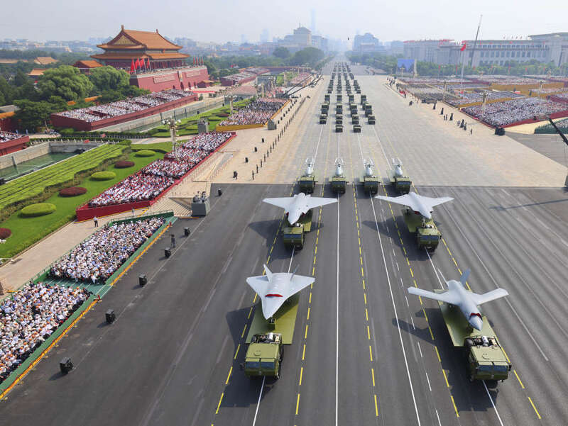 9月3日,纪念中国人民抗日战争暨世界反法西斯战争胜利80周年大会在北京隆重举行。这是装备方队接受检阅。新华社记者 刘续 摄