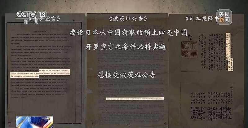 1945年,中美英三国共同签署,后来苏联参加的《波茨坦公告》,重申“开罗宣言之条件,必将实施”。