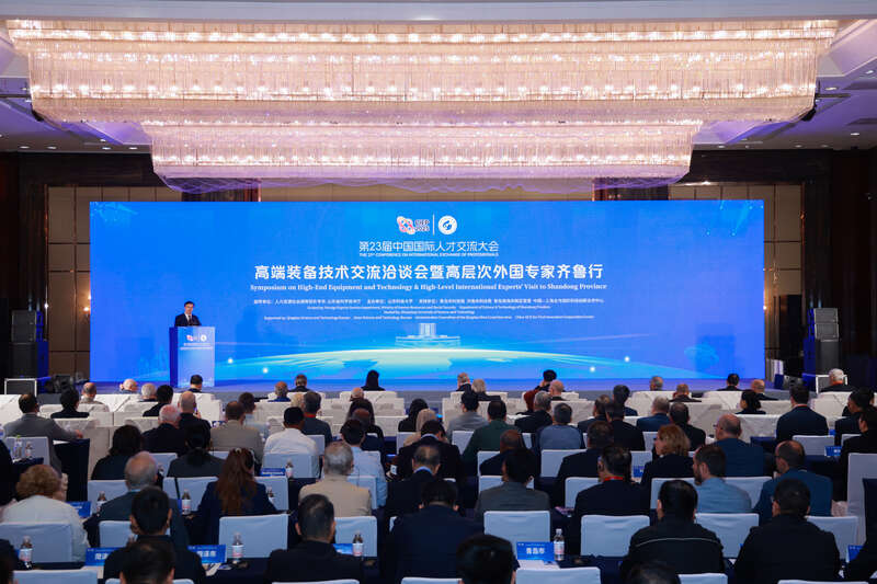 高端装备技术交流洽谈会暨高层次外国专家齐鲁行开幕式现场。(山东科技大学供图)