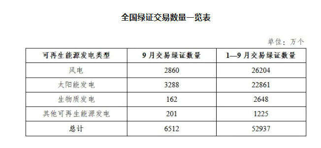 2025年9月,全国交易绿证6512万个,其中绿色电力交易绿证2102万个。2025年1—9月,全国交易绿证5.29亿个,其中绿色电力交易绿证1.79亿个。