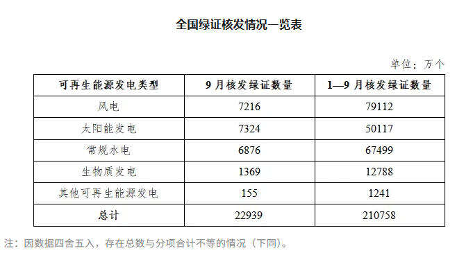 2025年9月,国家能源局核发绿证2.29亿个,涉及可再生能源发电项目30.65万个,其中可交易绿证1.58亿个,占比68.86%。本期核发2025年8月可再生能源电量对应绿证2.00亿个,占比86.98%。2025年1—9月,国家能源局共计核发绿证21.08亿个,其中可交易绿证14.35亿个。
