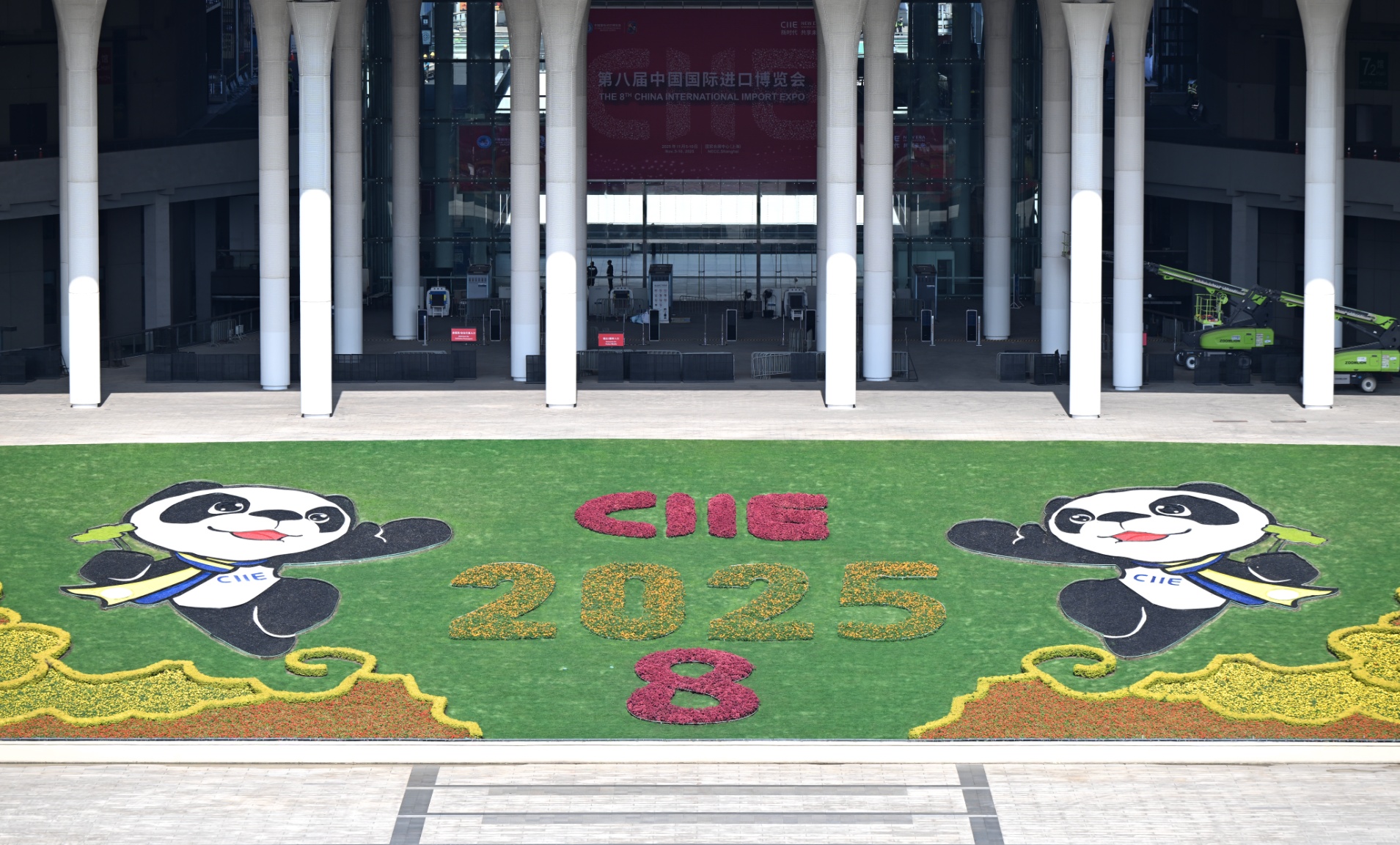 目前上海进博氛围浓情绽放。以“海纳百川,共享未来”为主题,国家会展中心(上海)南广场完成8000多平方米绿化景观布置,延续“云山—梯田花海—河流—现代城市花园”空间布局,各色花卉勾勒出祥云、渐变云山等纹样,“CIIE”“2025”字样与数字“8”造型醒目亮眼,广场两侧彩旗飘扬,展现上海正以开放的胸襟拥抱世界的姿态。二十四节气景观柱流光溢彩,林带探照灯、星光灯、水下灯等各类灯具以及装饰灯带的组合运用,层层叠叠的花卉和景观结构被一一点亮,全方位、多时段展示中华大地的锦绣河山与自然之美。