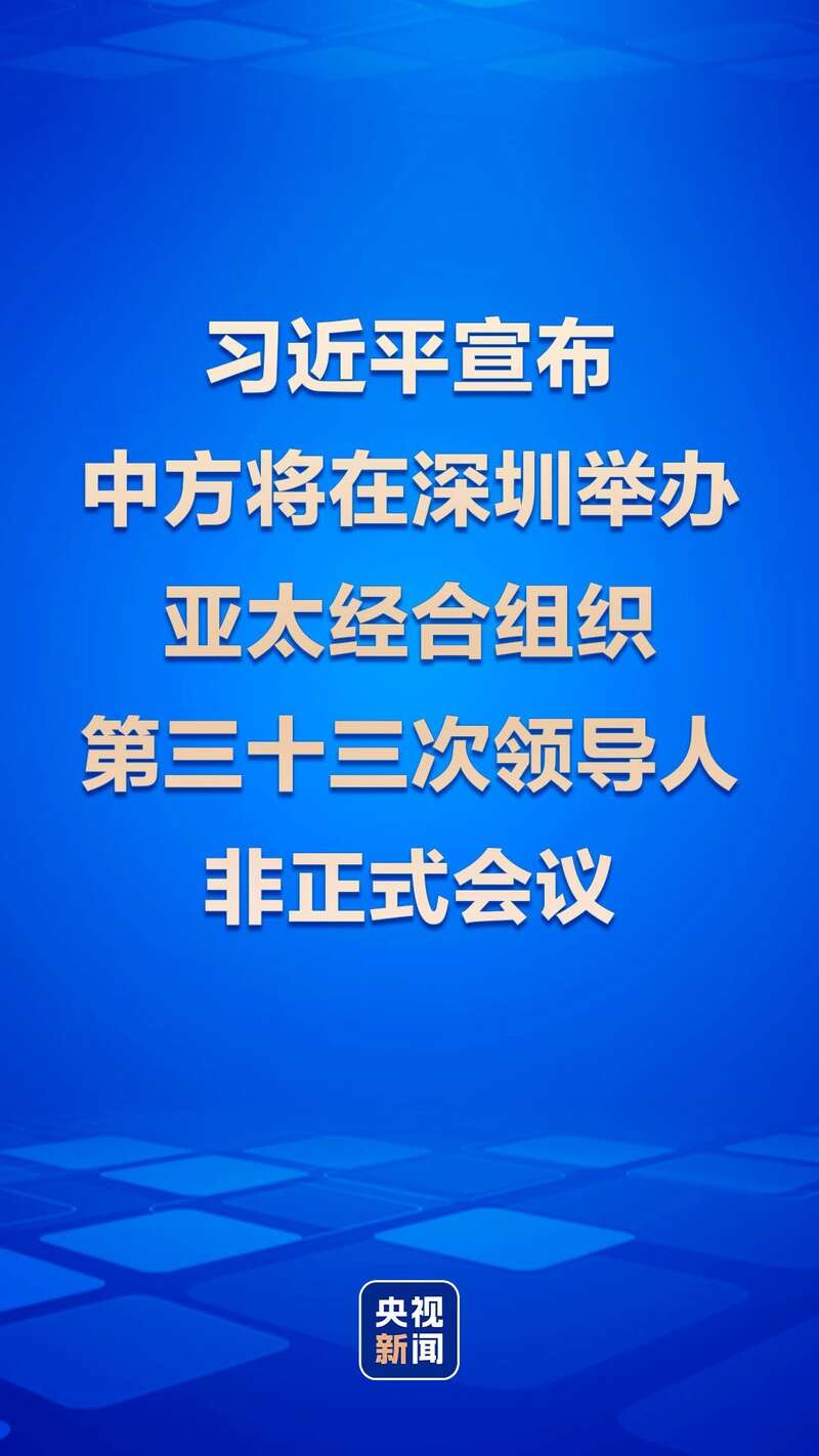 当地时间11月1日上午,国家主席习近平出席亚太经合组织第三十二次领导人非正式会议东道主交接环节,宣布中方将于明年11月在广东省深圳市举办亚太经合组织第三十三次领导人非正式会议。