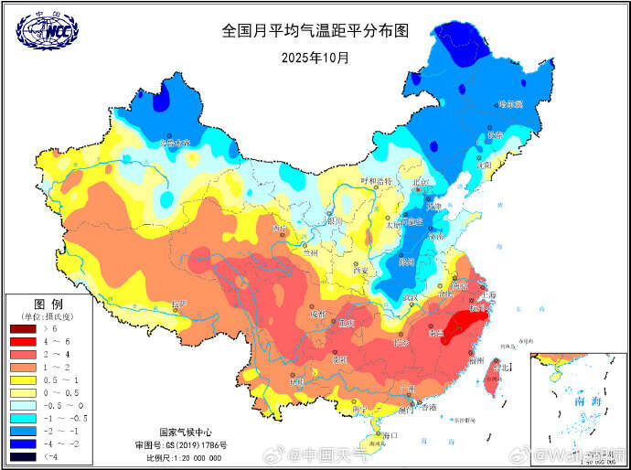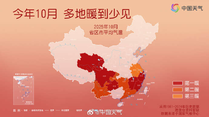 10月全国平均气温11.0℃,福建、贵州、浙江、江西、上海、四川、青海7个省市10月平均气温排名第一。