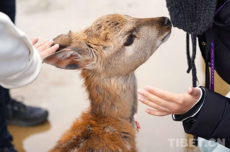 中国西藏网讯 车辆经过数小时的跋涉,沿着土石山路一路颠簸,我们终于抵达海拔4000米的西藏第一家规模化高原生态养鹿基地:工布江达县娘蒲乡梅花鹿养殖基地。皑皑白雪中,一群毛色华美、体态优雅的梅花鹿正悠闲踱步,与远方的雪山、近处的牧舍构成一幅动人的生态画卷。