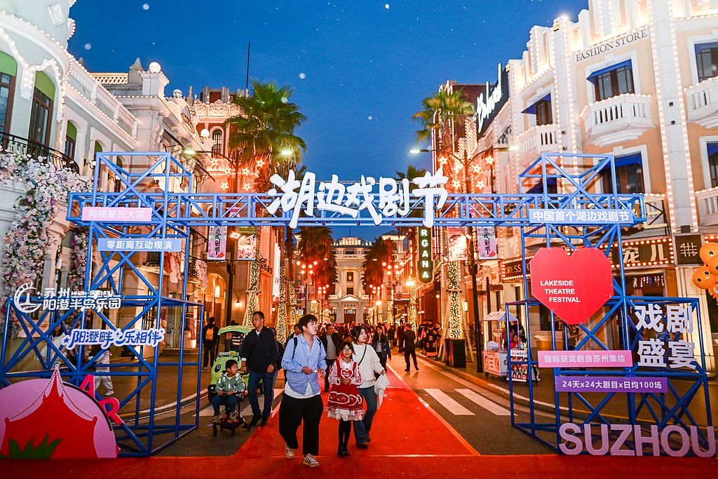 2025年11月2日,江苏苏州,首届湖边戏剧节在苏州阳澄半岛乐园举行,汇聚24部顶流剧目,打造“戏在景中、人在剧中”的全域沉浸体验,大批游客前来游玩,沉浸式体验戏剧盛宴。