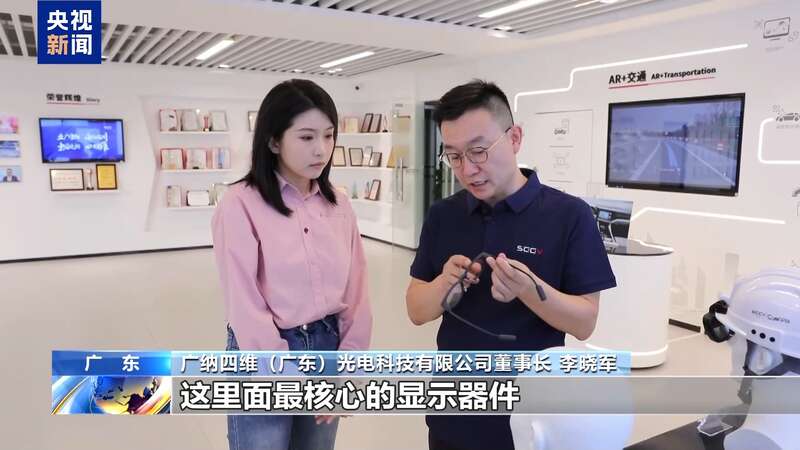 广纳四维(广东)光电科技有限公司董事长 李晓军:这里面最核心的显示器件,就是用光波导芯片来实现。