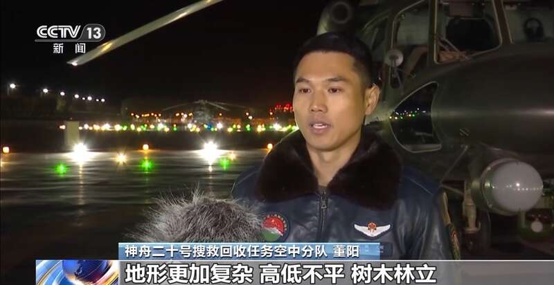 神舟二十号搜救回收任务空中分队 董阳:东区的地形较于西区来说,地形更加复杂,高低不平,树木林立,对着陆有较大的影响。针对东区的特点,我们也进行了夜间索降的飞行方法训练。
