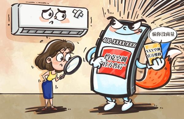 比如,上海刘女士网搜“400”保修电话,找“品牌授权店”修中央空调,付1万元后空调仍坏,维修方失联,警方打击该团伙后发现,涉案金额超300万元;重庆市民宋先生报修空调不制冷,接线员承诺“加氟五六十元”,维修后却收700余元……