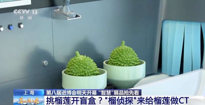 郑连凯:挑榴莲你在行吗?有没有过开盲盒的经历?首次亮相进博会的“榴侦探”,可以给榴莲“做CT”,果肉饱满度,分几房,有没有虫害,这些信息都可以呈现,每颗榴莲完成检测只需要12秒钟,准确率在98%以上。