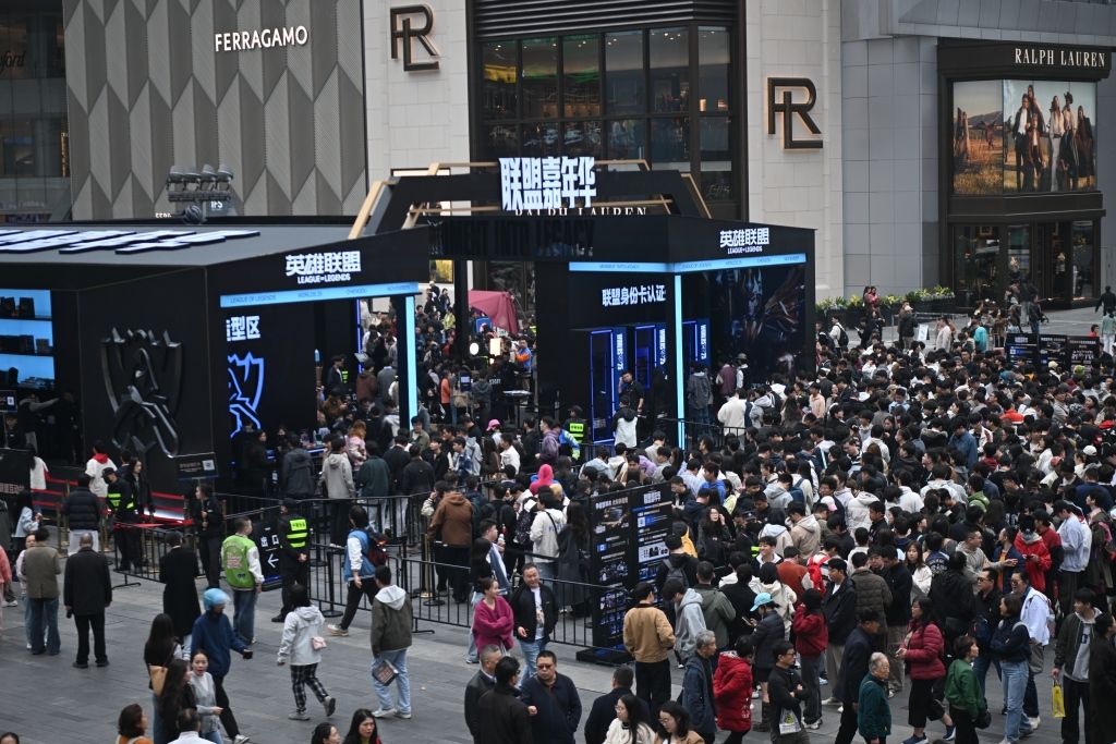 2025年11月6日,为期一周(11月4日-9日)的联盟嘉年华·英雄联盟总决赛线下活动在成都春熙路步行街迎来人气高峰,现场摩肩接踵、氛围火爆,来自全国各地的英雄联盟拥趸们齐聚潮流地标,共赴这场电竞盛宴。