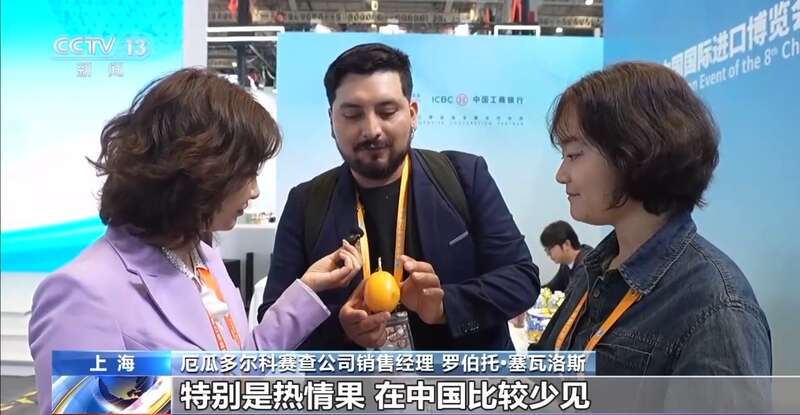厄瓜多尔科赛查公司销售经理 罗伯托·塞瓦洛斯:特别是热情果,在中国比较少见,有好多客户都对这个很感兴趣。对我来说太兴奋了。这边的工作人员对我们服务很细致,一直在帮我对接客户。