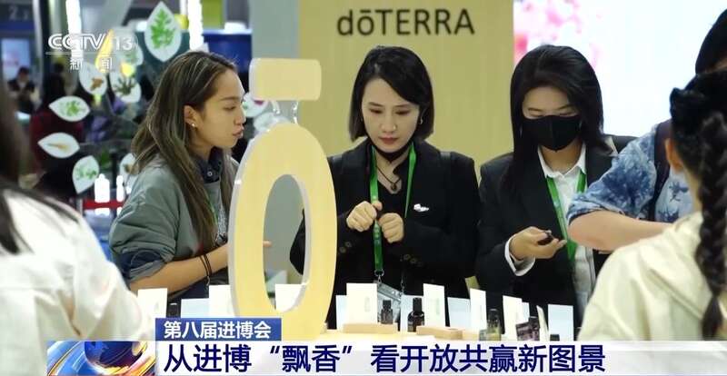 这家美国精油企业是连续8年参加进博会的“全勤生”,在企业的展区内各式各样散发着独特芬芳的精油产品,吸引了许多观众驻足体验。展台上多款热门精油都和中国关系匪浅,今年在进博会首发的主打产品艾草精油,原料来自中国的贵州;产自青海的大籽蒿精油,见证了美国犹他州和青海省之间跨越山海的友好情谊。“中国原料+国际工艺”的合作模式,让山野之间的中国草本,通过全球贸易网络香飘世界。