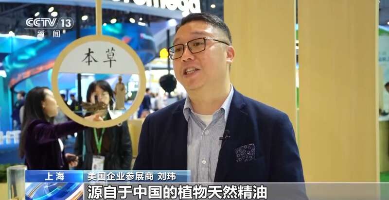 美国企业参展商 刘玮:从第二届进博会开始,每年都会首发一款源自于中国的植物天然精油。进博会给我们带来的不仅是一个非常好的展示的平台,也是让我们企业实实在在地获得利益。我们刚刚签约完成的意向金额已经达到了7个亿人民币。