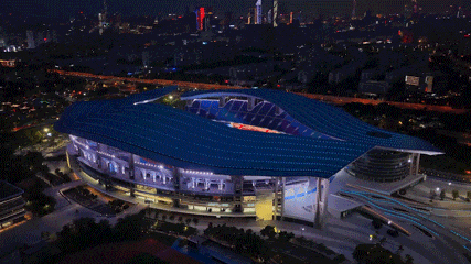 经过升级改造后的广东奥体中心体育场,新造型也很有看点:设计灵感来自“珠水奔流、湾区浪涌”。屋顶像飘带,看台像木棉,广场景观像珠江翻涌的波浪~整体呈现海蓝色调,很有大湾区的氛围感!