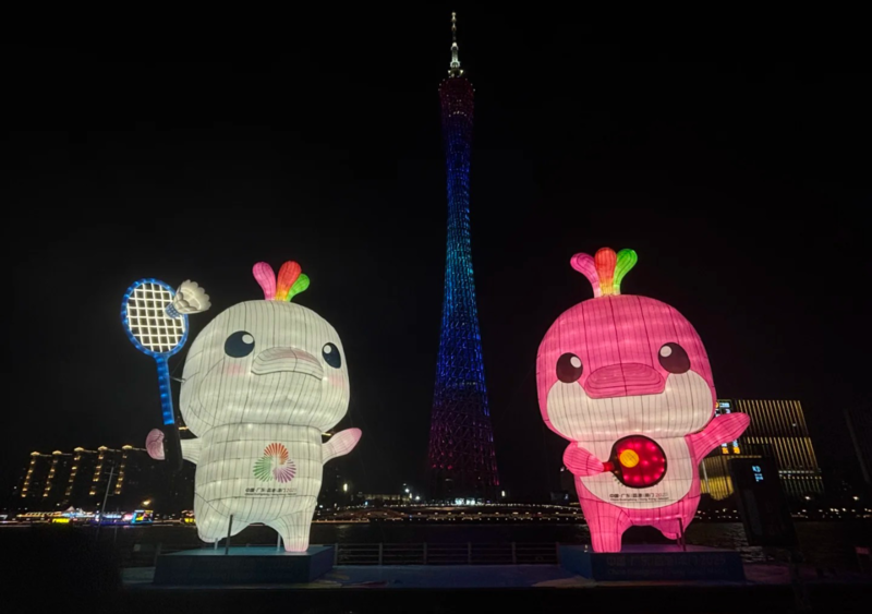 看完比赛,在不远处的天河六运小区,你还可以和造型各异的十五运会吉祥物“喜洋洋”与“乐融融”打卡拍照。