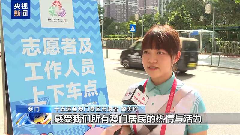 十五运会澳门赛区志愿者 黎美玲:我本身是一名小学老师,这次很开心以志愿者的身份参与在家门口举办的全运会赛事的服务工作。我们已经都准备好了,欢迎各地的朋友来到澳门,感受激情全运会和活力大湾区,感受我们所有澳门居民的热情与活力。
