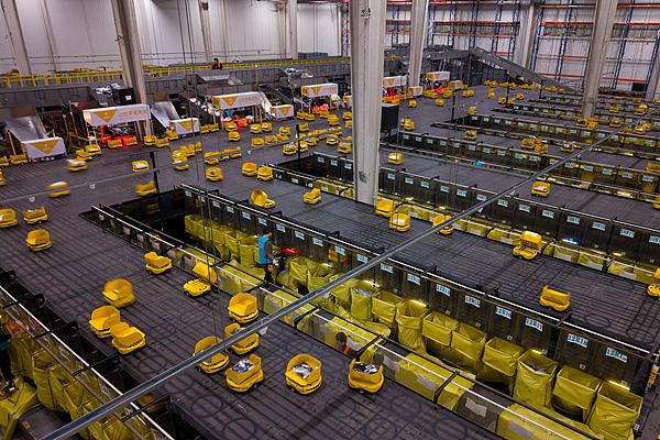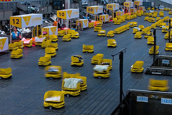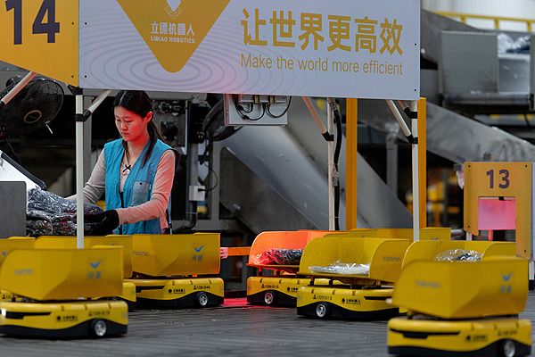 2025年11月10日,“双十一”前夜,浙江湖州市德清县,快鱼华东物流中心迎来一年中最繁忙的时刻。880台橙黄色的机器人分拣员,载着各色服饰包裹,在双层分拣平台上灵巧穿梭。分拣好的货品被放入对应物流袋中,等待发往全国各地。