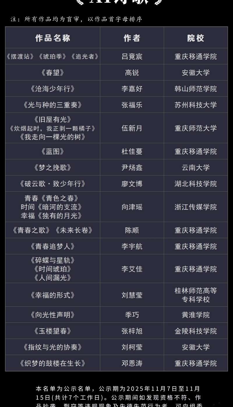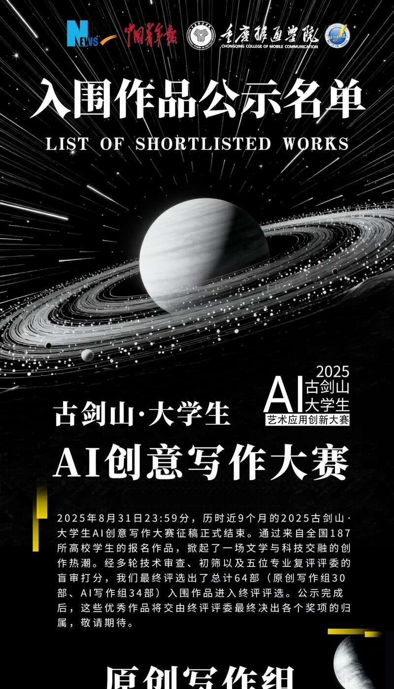 评审结果 | 2025古剑山·大学生AI创意写作大赛入围作品名单公示