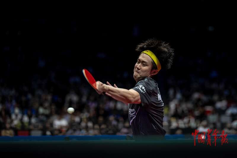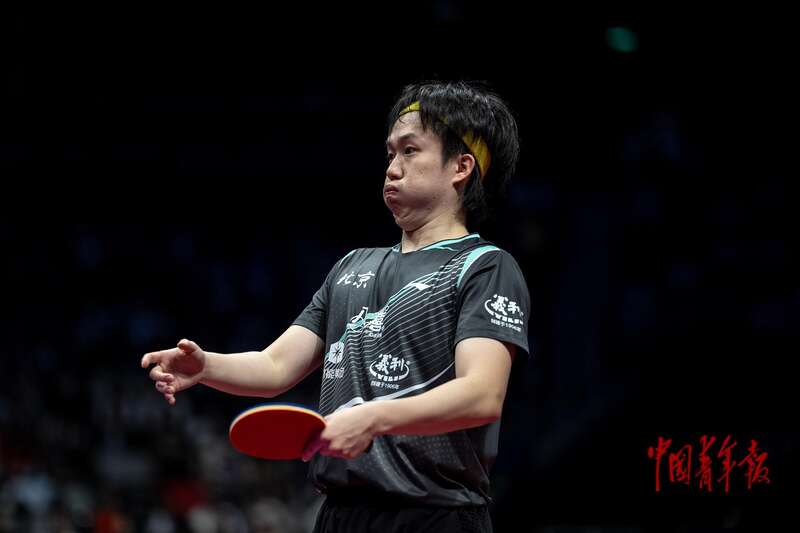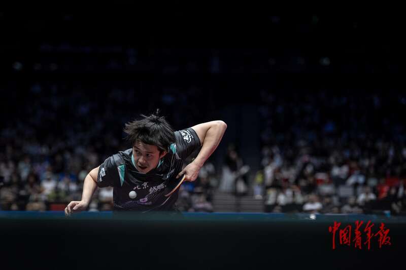 11月16日,澳门,第十五届全国运动会乒乓球男子单打铜牌赛,北京队选手王楚钦在比赛中。中青报·中青网记者 李隽辉/摄