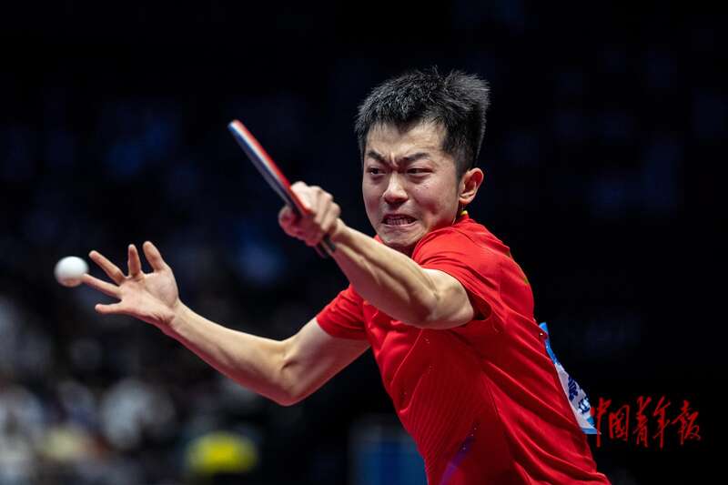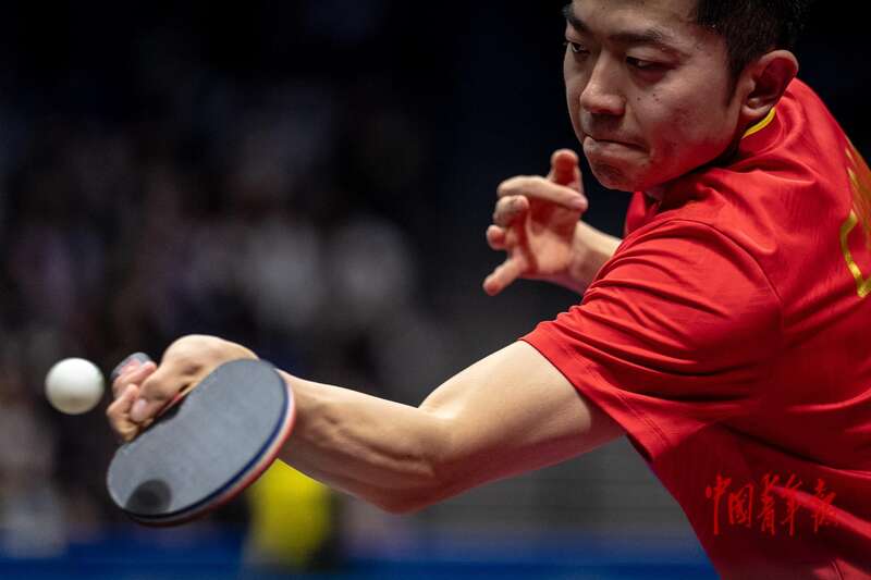 11月16日,澳门,第十五届全国运动会乒乓球男子单打铜牌赛,辽宁队选手袁励岑在比赛中。中青报·中青网记者 李隽辉/摄