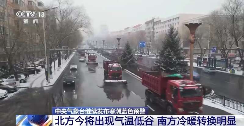今明两天,寒潮继续给我国中东部带来大风、降温天气,气温将自北向南陆续跌入低谷。与此同时,南方阴雨有所增多,未来一周,受补充冷空气影响,南方大部地区气温将较常年偏低。中央气象台今天上午继续发布寒潮蓝色预警。