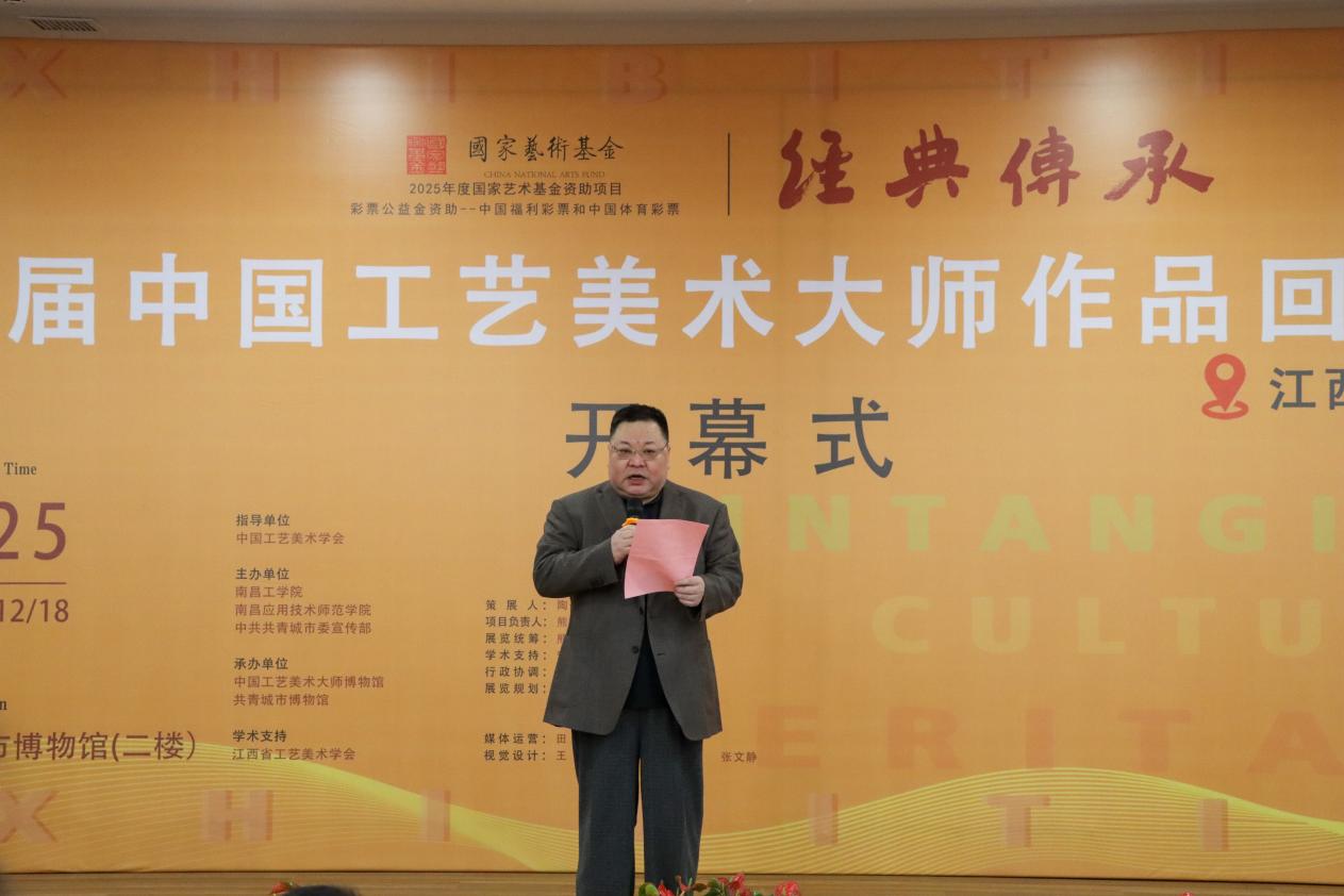 王斌宣布“经典传承——历届中国工艺美术大师作品回巡展”共青城站开幕。
