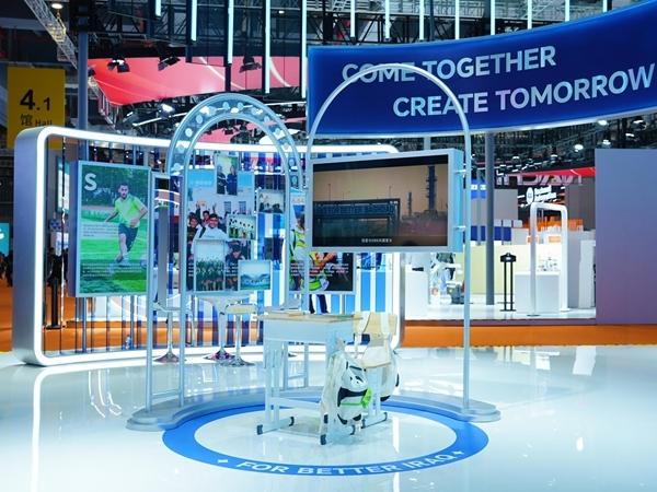 今年的进博会上,这张从伊拉克运来的课桌在这个“寸土寸金”的展馆里,格外引人注目。一张普普通通的小学课桌,桌边悬挂着一个白色的中国熊猫书包,桌边环绕着的是展区照片墙与数字屏幕。屏幕上同步展示着学校建设历程、属地员工培训等故事。振华石油公司的工作人员解释说:“我们特意把它从8717公里外的伊拉克巴格达带到上海,就是想让大家知道,在中伊友好合作的发展之路上,有一群孩子正坐在这样的课桌前,重新看见光。”