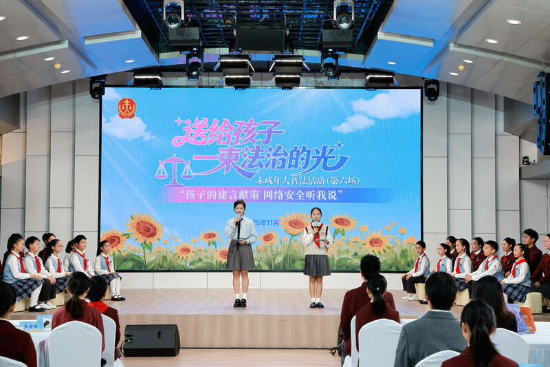 本场普法活动除了法官和嘉宾们的以案说法,也融入了未成年人的调研和思考成果。大小朋友携起手来,在法治的引领下,共筑网络安全屏障,护航数字时代成长,努力将“法治的光”照进未成年人的数字生活。