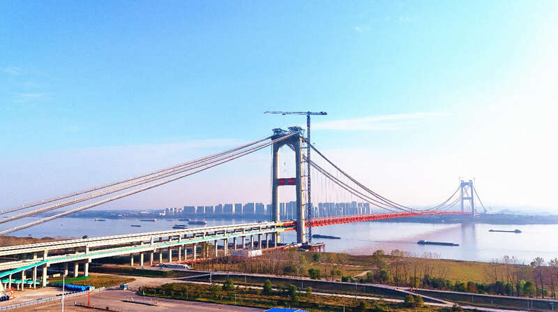燕矶长江大桥作为鄂黄第二过江通道,是世界首创采用1860米跨径不同垂度四主缆悬索桥结构体系一跨过江的双层桥梁。上层为大广高速复线,下层为城市快速路。大桥建成后,将实现黄冈至鄂州花湖机场15分钟直达,有力推动“武鄂黄黄”都市圈一体化发展。