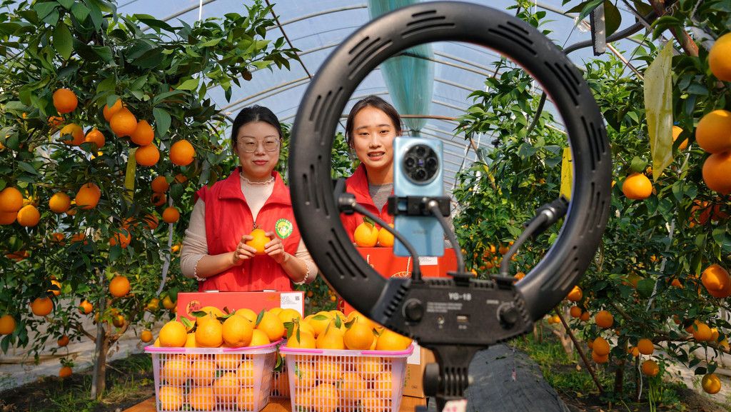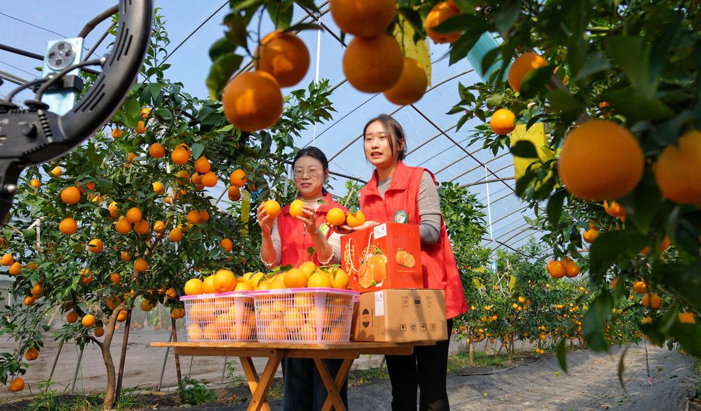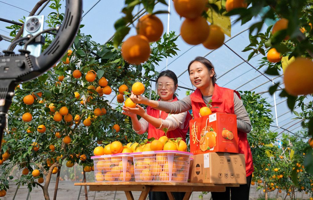 2025年11月24日,江苏省海安市白甸镇组织开展“志愿服务 助农增收”公益活动,青年志愿者走进周垛村一处柑橘种植基地,帮助果农采摘成熟的柑橘,并现场直播带货推销,助力丰产增收。