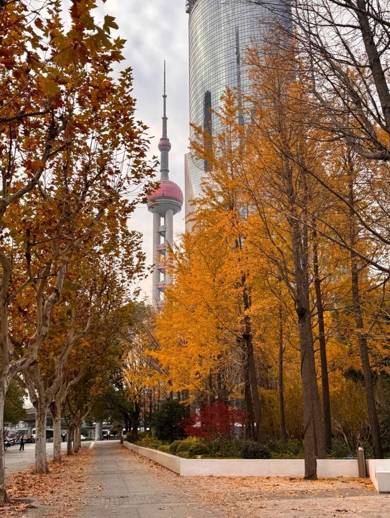 同时,今年新增的陆家嘴西路(明珠环岛至滨江大道),毗邻东方明珠,是陆家嘴核心路段,其两侧悬铃木落叶为金融城摩天楼的现代景观增添了自然季节元素,为在陆家嘴中心奔波的上班族们在钢筋水泥辟出一片休憩放空的小天地。