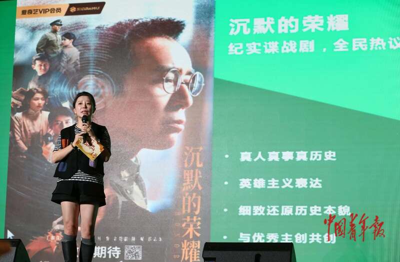 11月26日,北京,2025青年国潮品牌共创大会会场,爱奇艺副总裁王晓燕在演讲中介绍电视剧《沉默的荣耀》的创作故事。中青报·中青网记者 陈剑/摄
